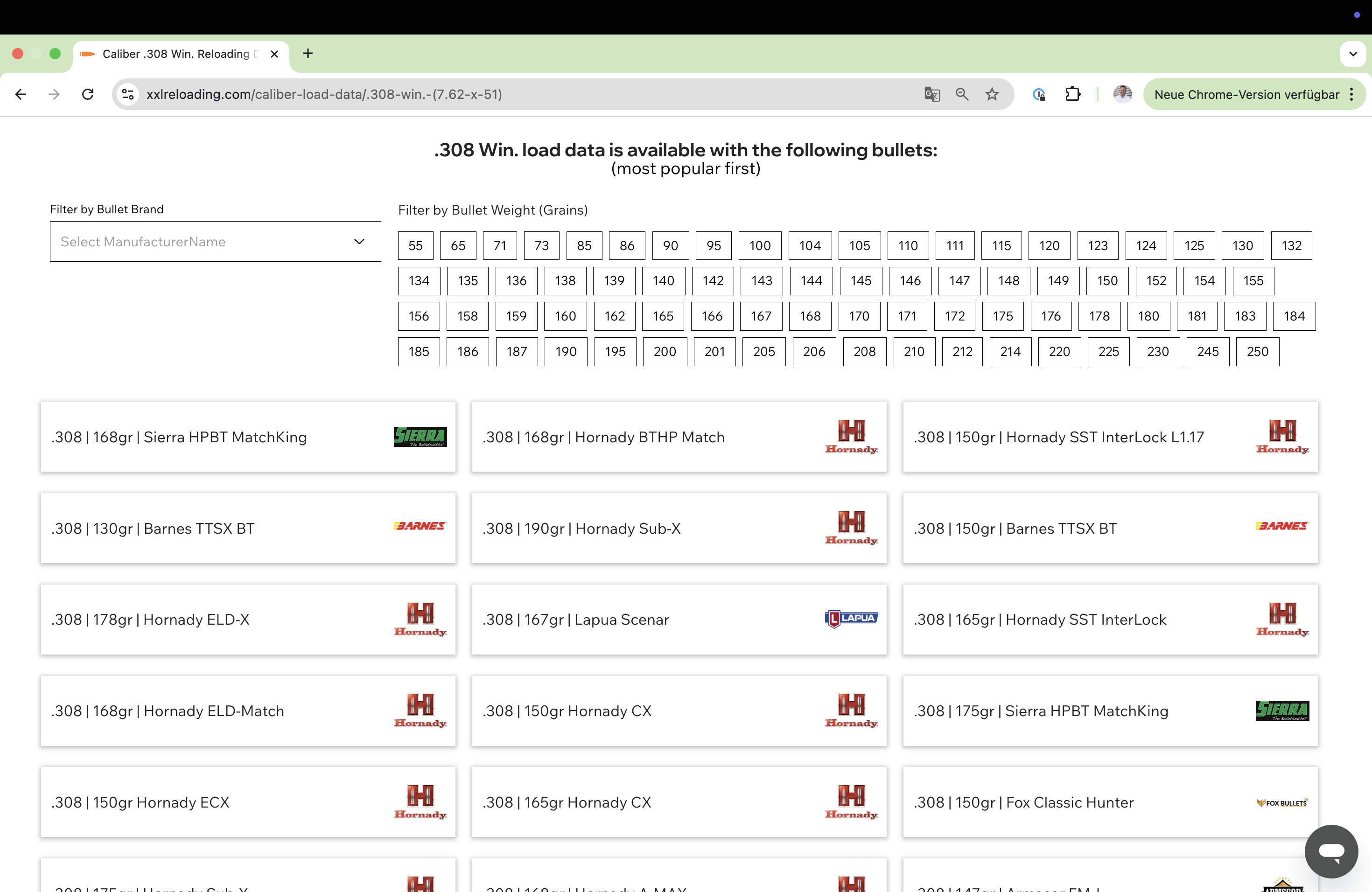 - Alle geeigneten Geschosse für dieses Kaliber, für die wir Ladedaten anbieten